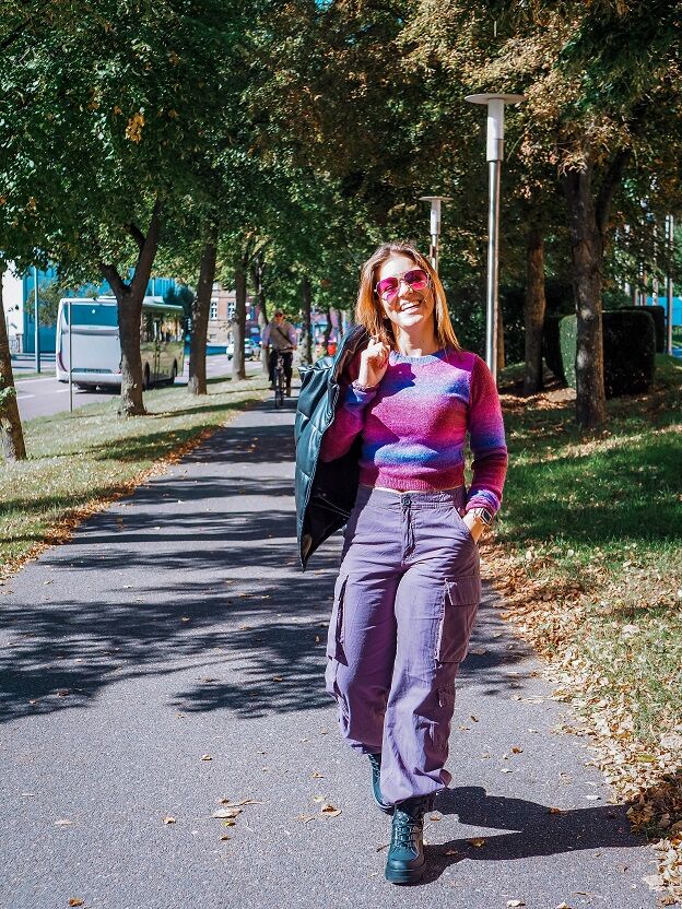 Wie du siehst, lässt sich die knallige Farbe auch ganz einfach mit einer blauen oder einer schwarzen Jeans kombinieren.