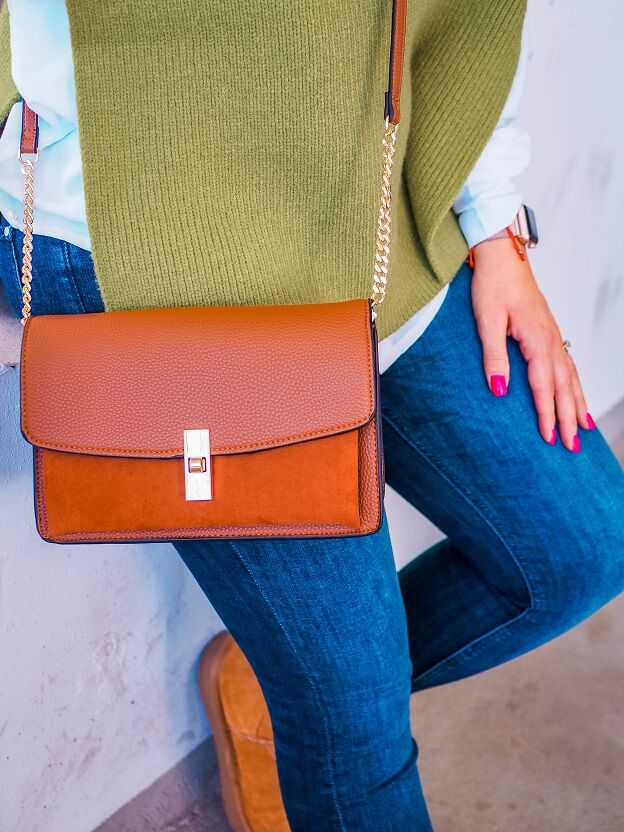 Den Klassiker kannst du mit einem schlichten Outfit, bestehend aus heller Jeans und kuschligem Pulli, kombinieren und damit einen lässigen, herbstigen Look kreieren.