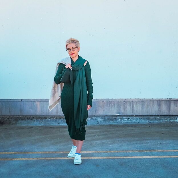 Wer mutig ist, trägt dieses Jahr seine Lieblingsfarbe im kompletten Look. Bei Takko findest du dieses lässige Outfit in saftigem Grün. Dabei wird das leuchtende Strick-Kleid mit Schal und Mütze im exakt gleichen Farbton kombiniert.