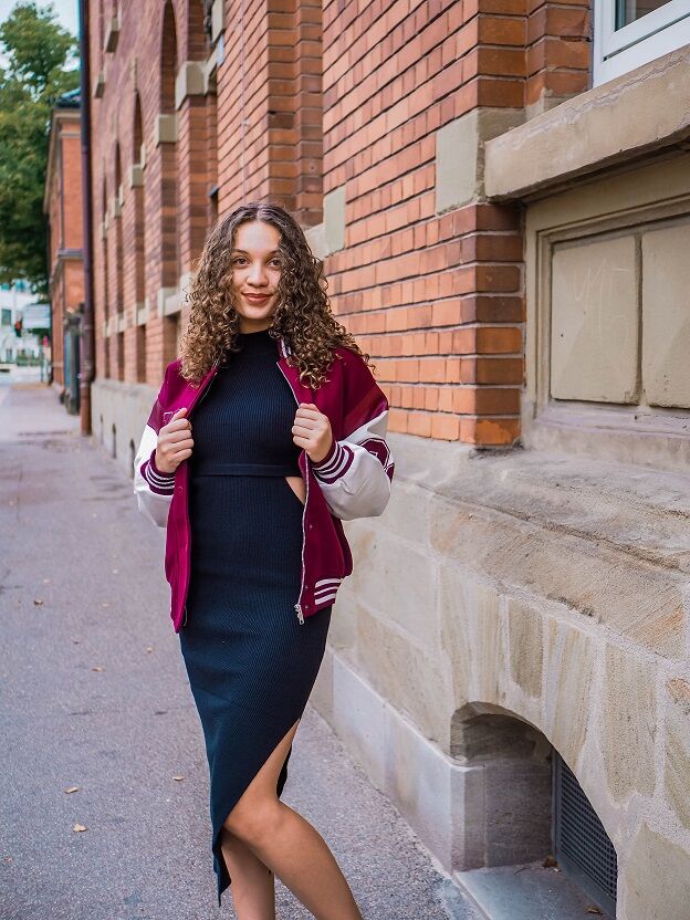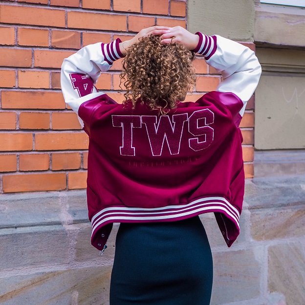 Die angesagten College-Jacken kommen wieder zurück. Bei Tally Weijl findet ihr diese lässige Jacke in der angesagten Farbe Rot! Dadurch wirkt der Look mit edlem Strickkleid und Cut-Outs mega lässig!