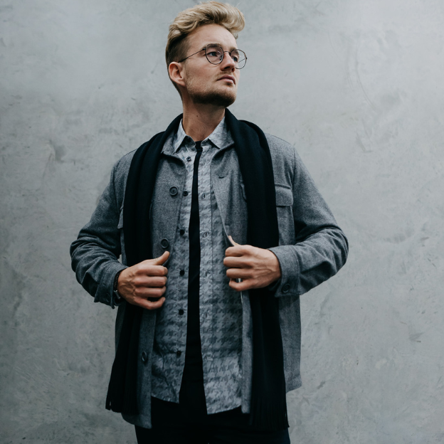 Diesen kompletten Look mit lässigem Hemd, Jacke und Schal findet ihr bei TC Buckenmaier.