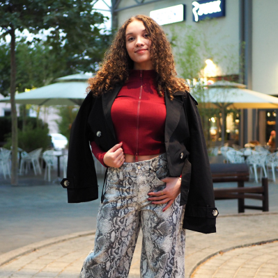 Schon genug vom Leo-Trend? Dann probier's doch mal mit anderen Animal-Prints, wie zum Beispiel dieser Hose in Schlangen-Optik. Passt übrigens perfekt zur Trend-Farbe Rot. Das komplette Outfit findest du bei Tally Weijl!