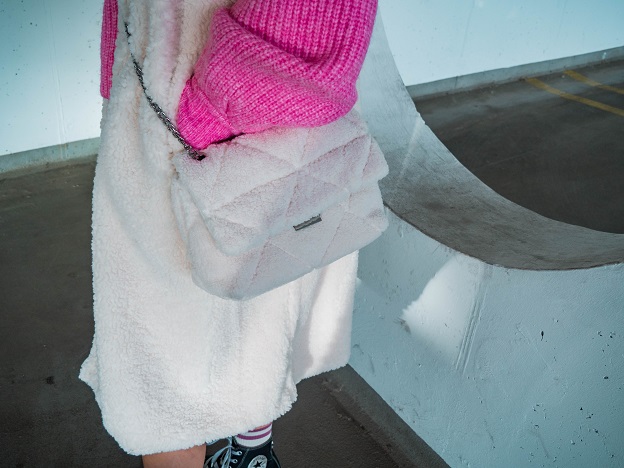 Du magst es bunt? Dann ist dieser coole Look von C&A vielleicht etwas für dich! Der weiche pinke Rollkragenpullover ist in Kombination mit dem petrolfarbenen Skort ist ein richtiger Eyecatcher! Die flauschige Weste und Handtasche im Teddy-Look sowie die lässigen Streifensocken machen das bunte Outfit komplett.